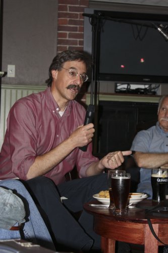 Keene Planning Director Rhett Lamb weighs in on a climate change question from the crowd at the Barley House.