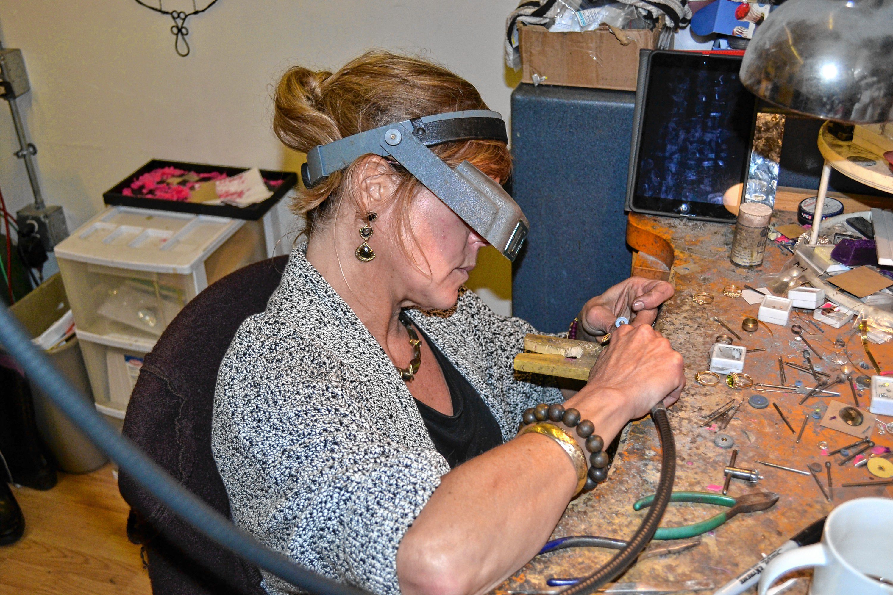 Kristin Kennedy works on a piece of jewelry in her downtown Concord studio. TIM GOODWIN / Insider staff