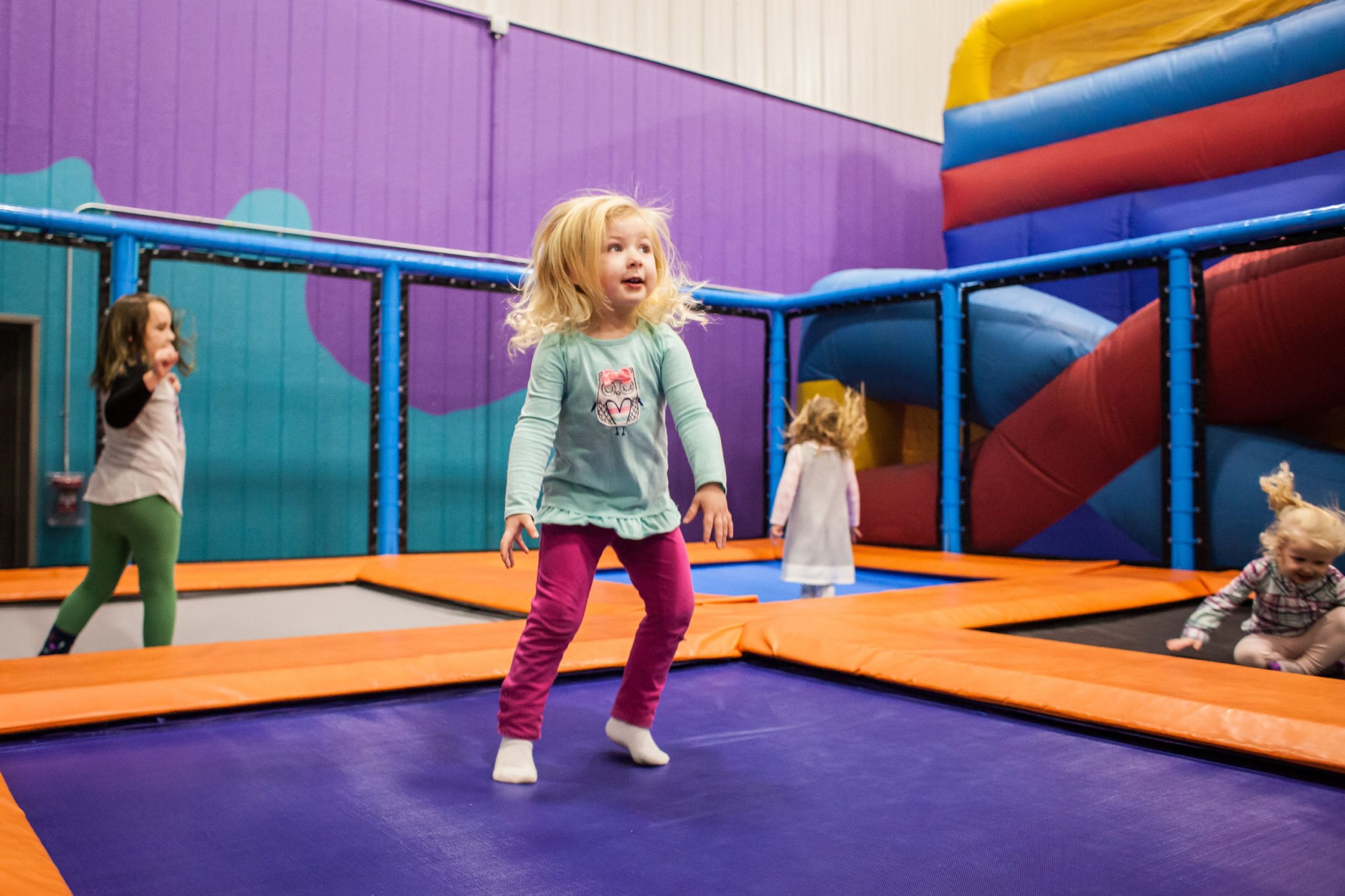 Lilah Harvey (center), 3, of Concord jumps on the trampoline at Krazy Kids Indoor Play & Party Center in Pembroke on Friday, Dec. 29, 2017. (ELIZABETH FRANTZ / Monitor staff) Elizabeth Frantz