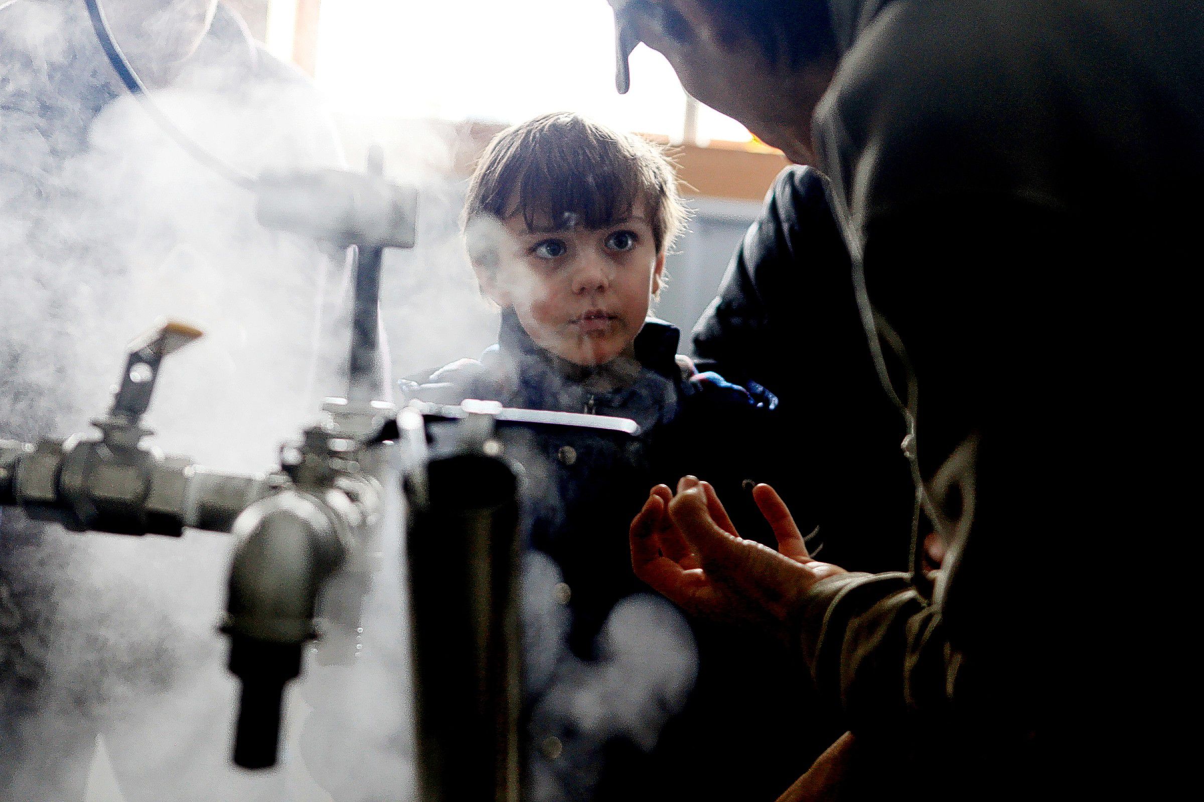 James Russell of Concord, 8, listens to Stefan Lillios explain how to make maple syrup in the boiling room at Maple Ridge Sugar House in Loudon on Saturday, March 22, 2014. Visitors could see maple syrup being made, tour the farm, visit with a horse, a cow and pigs and taste maple treats. (ARIANA van den AKKER / Monitor staff) James Russell, 8, of Concord, listens to Stefan Lillios explain how to make maple syrup in the boiling room at Maple Ridge Sugar House in Loudon yesterday. Visitors could watch maple syrup being produced, tour the farm, visit with a horse, a cow and pigs, and taste maple treats. Ariana van den Akker