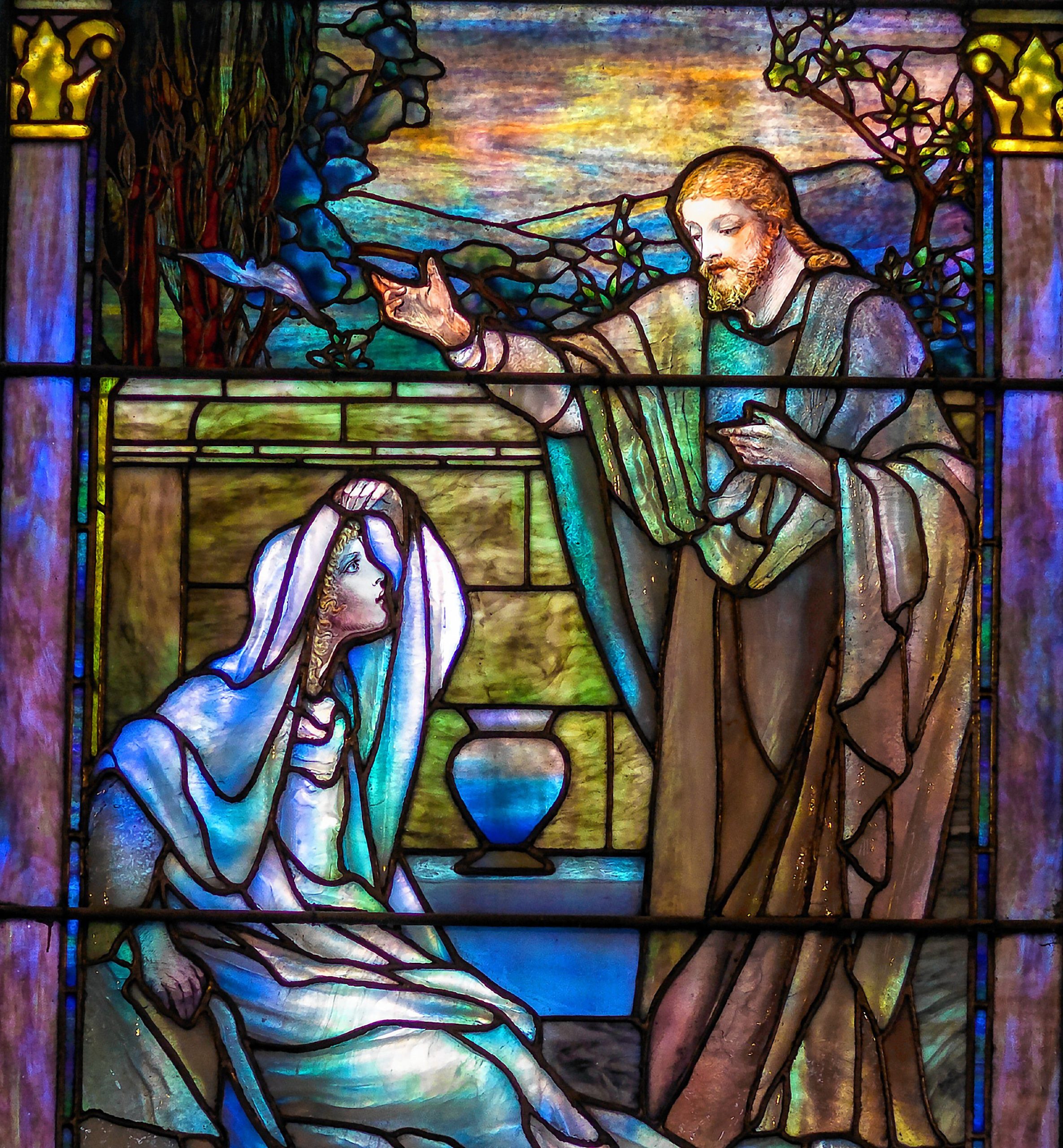 A Tiffany stained glass window at South Church Concord, a United Church of Christ church on Pleasant Street.